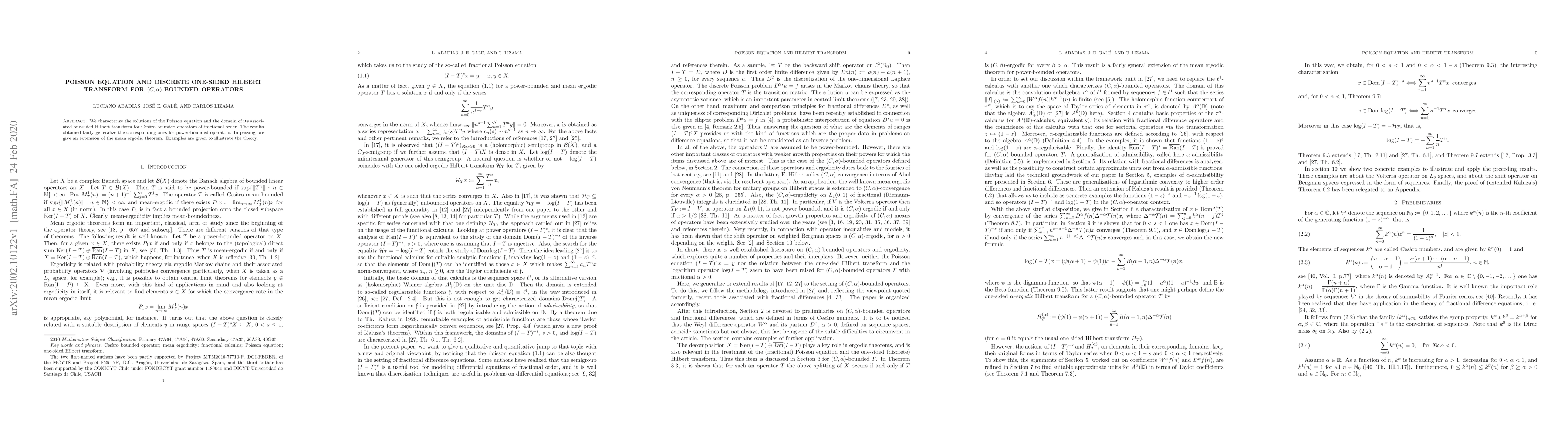 We characterize the solutions of the Poisson equation and the domain of its associated one-sided Hilbert transform for Ces\`aro bounded operators of fractional order. The results obtained fairly generalize the corresponding ones for power-bounded operators. In passing, we give an extension of the mean ergodic theorem. Examples are given to illustrate the theory.