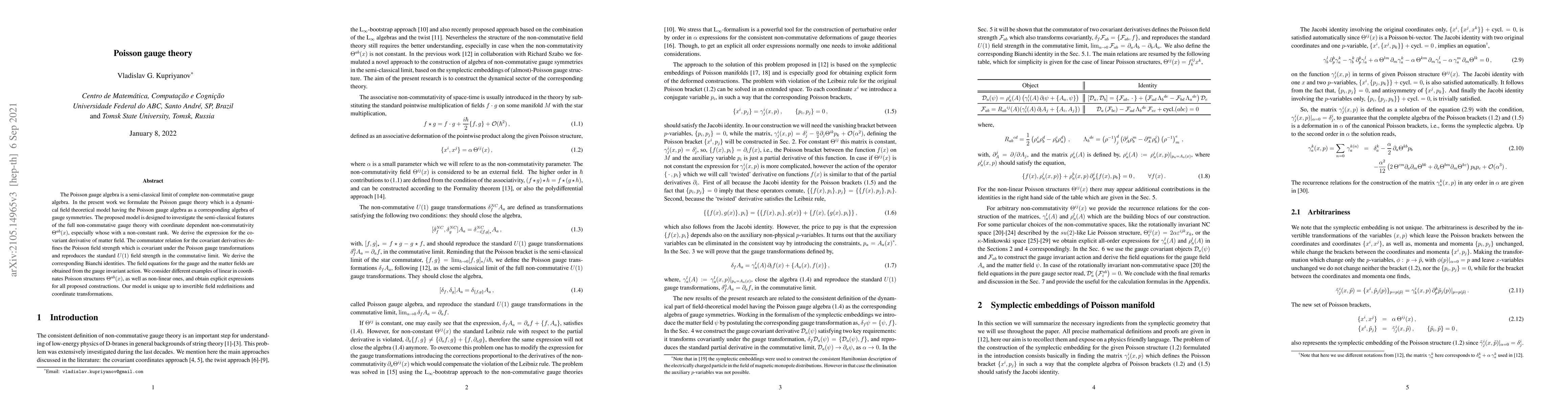 The paper formulates a Poisson gauge theory, using the Poisson gauge algebra as the gauge symmetry, to explore semi-classical features of non-commutative gauge theory. It derives covariant derivatives and Bianchi identities, and derives field equations from a gauge invariant action, providing explicit examples of coordinate-dependent Poisson structures.