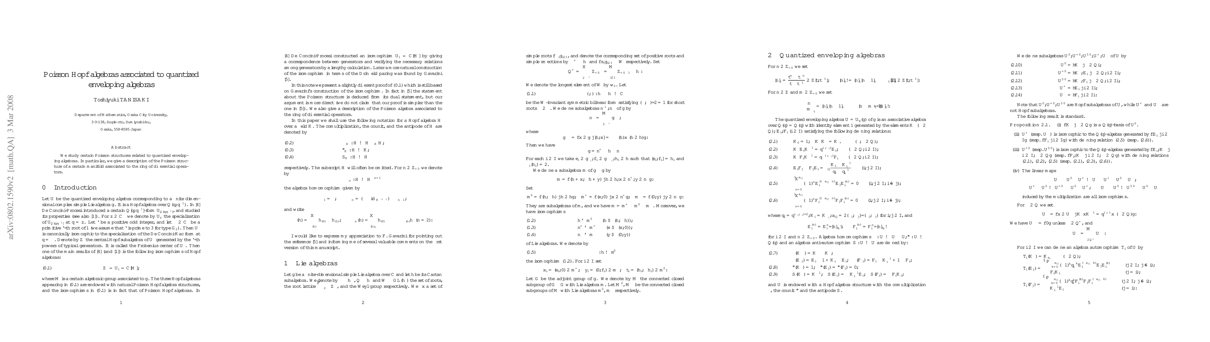 We study certain Poisson structures related to quantized enveloping algebras. In particular, we give a description of the Poisson structure of a certain manifold associated to the ring of differential operators.