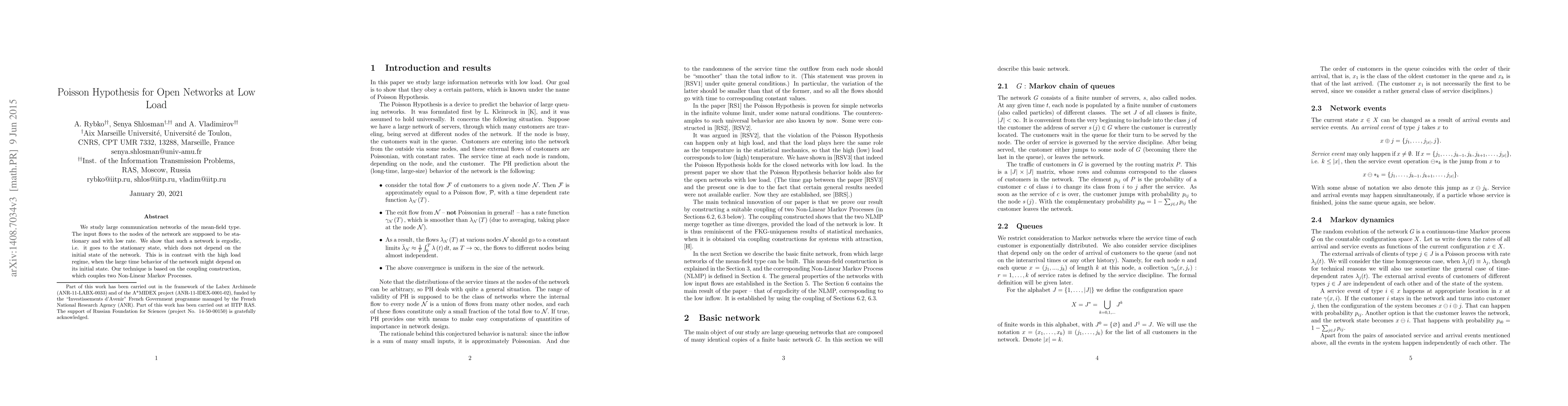 Researchers show that large communication networks with low input flows can reach a stationary state regardless of their initial condition, unlike high-load regimes where the outcome depends on the start.