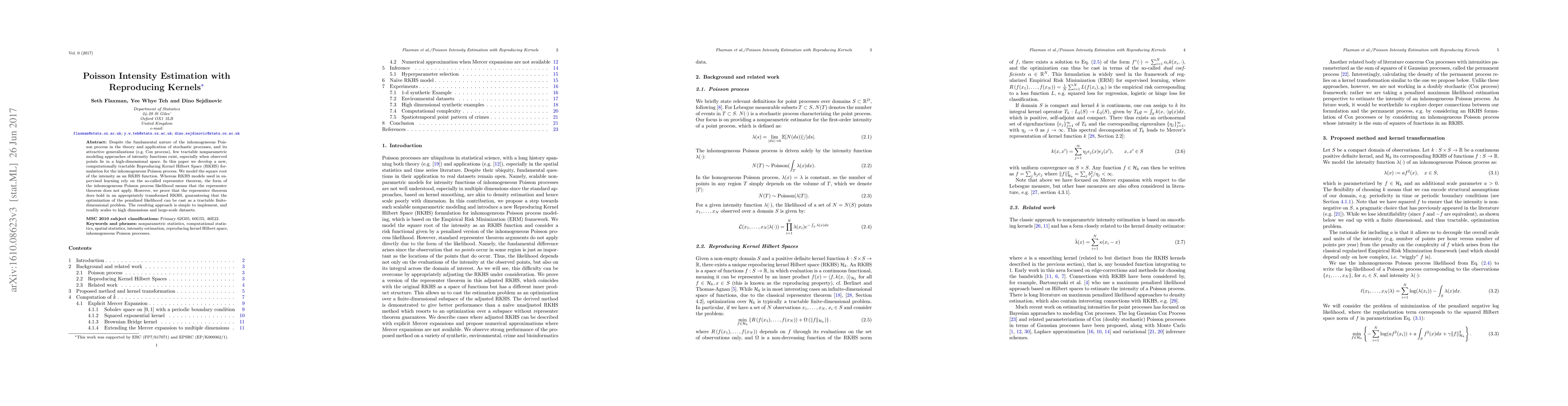 This paper introduces a new Reproducing Kernel Hilbert Space (RKHS) formulation for estimating the intensity of inhomogeneous Poisson processes, particularly in high-dimensional spaces. Unlike traditional RKHS models, it proves the applicability of the representer theorem in a transformed RKHS, enabling scalable optimization of the penalized likelihood for large datasets.