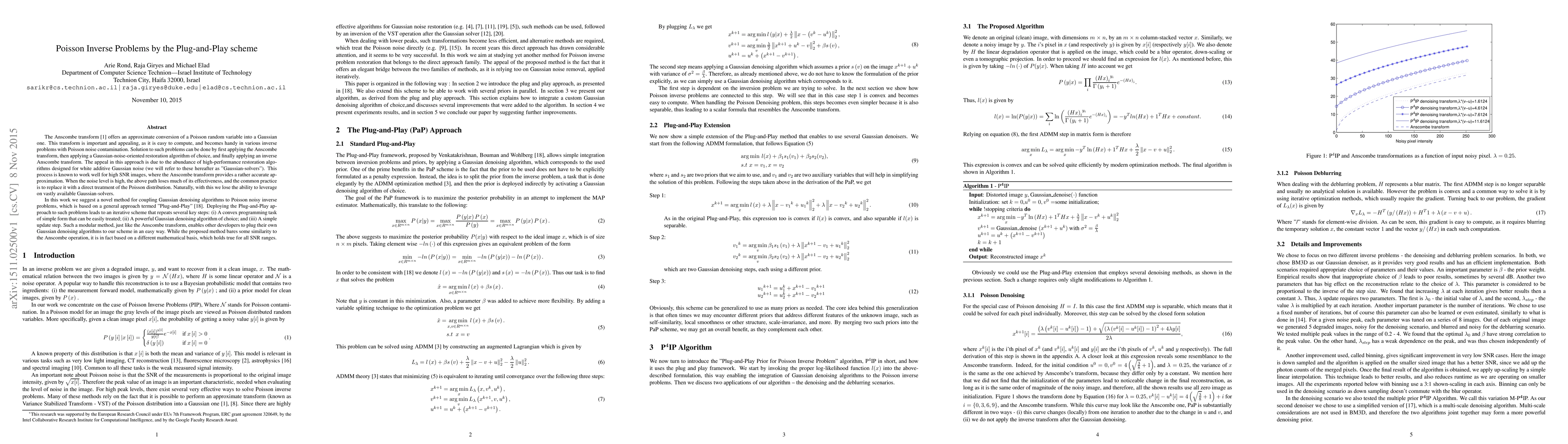 This paper proposes a novel "Plug-and-Play" scheme for solving Poisson inverse problems by iteratively combining convex programming, Gaussian denoising algorithms, and a simple update step. Unlike the Anscombe transform, this method is effective across all signal-to-noise ratios, leveraging existing Gaussian-solvers for high-performance restoration.