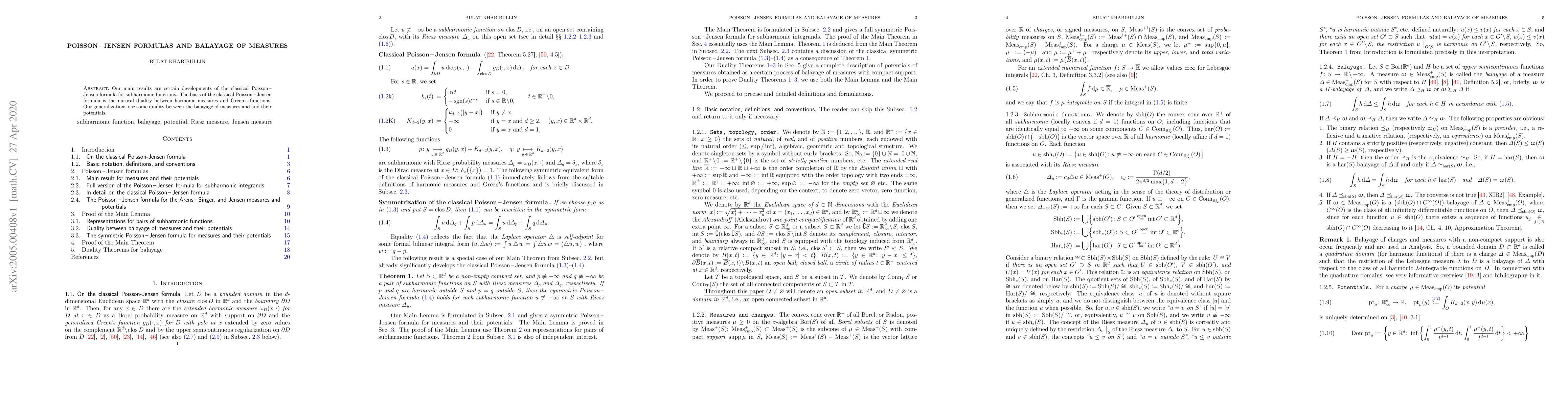 Our main results are certain developments of the classical Poisson--Jensen formula for subharmonic functions. The basis of the classical Poisson--Jensen formula is the natural duality between harmonic measures and Green's functions. Our generalizations use some duality between the balayage of measures and and their potentials.