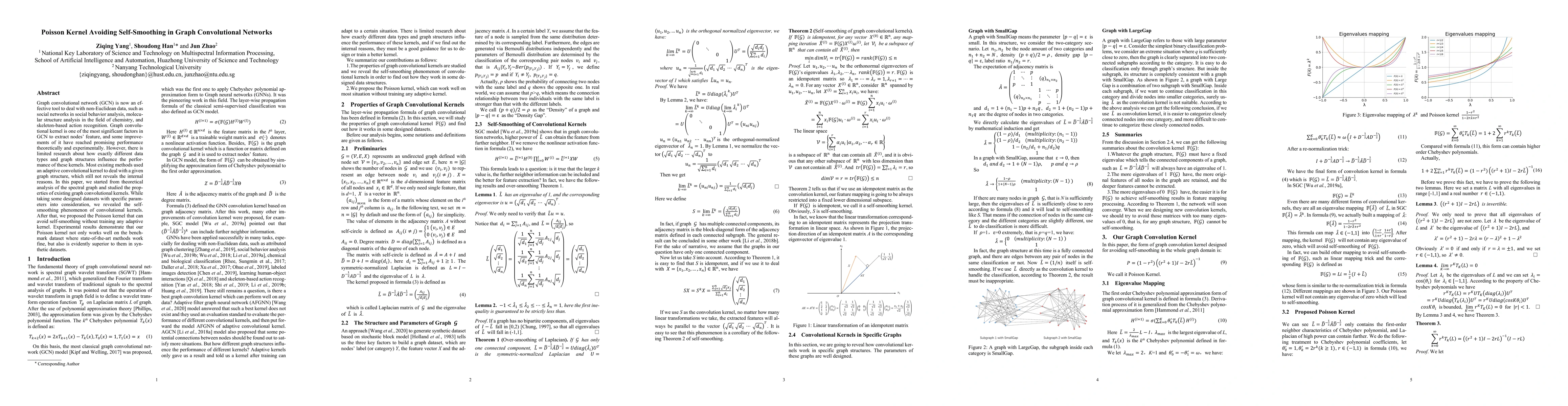 This paper investigates the self-smoothing phenomenon in graph convolutional kernels and proposes a Poisson kernel to mitigate it without requiring adaptive training. Experimental results show that the new Poisson kernel outperforms existing methods on both benchmark and synthetic datasets.