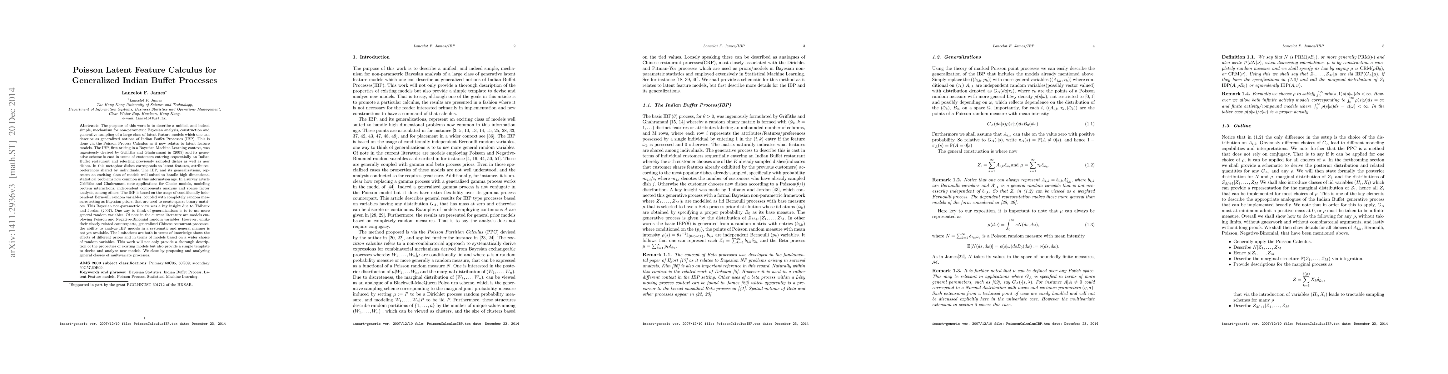 This paper introduces a unified mechanism for non-parametric Bayesian analysis of generalized Indian Buffet Processes (IBP) using Poisson Latent Feature Calculus. It aims to systematically analyze and generate a wide class of latent feature models, addressing limitations in existing models based on different priors and random variables.