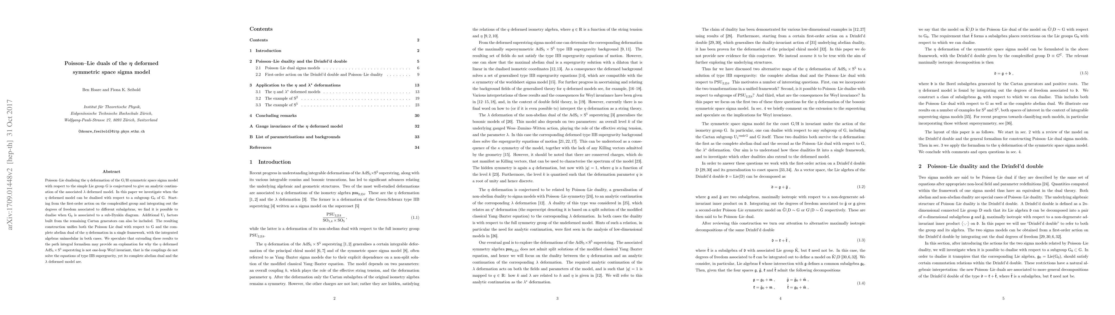 Researchers investigate dualizing the eta deformed symmetric space sigma model with respect to a subgroup G_0 of the simple Lie group G, finding it possible when G_0 is associated to a sub-Dynkin diagram.