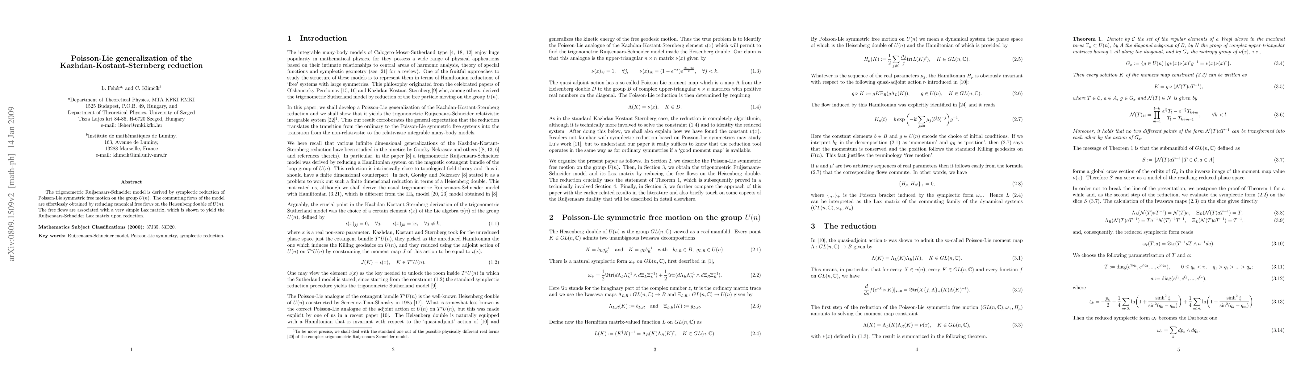 The trigonometric Ruijsenaars-Schneider model is derived by symplectic reduction of Poisson-Lie symmetric free motion on the group U(n). The commuting flows of the model are effortlessly obtained by reducing canonical free flows on the Heisenberg double of U(n). The free flows are associated with a very simple Lax matrix, which is shown to yield the Ruijsenaars-Schneider Lax matrix upon reduction.