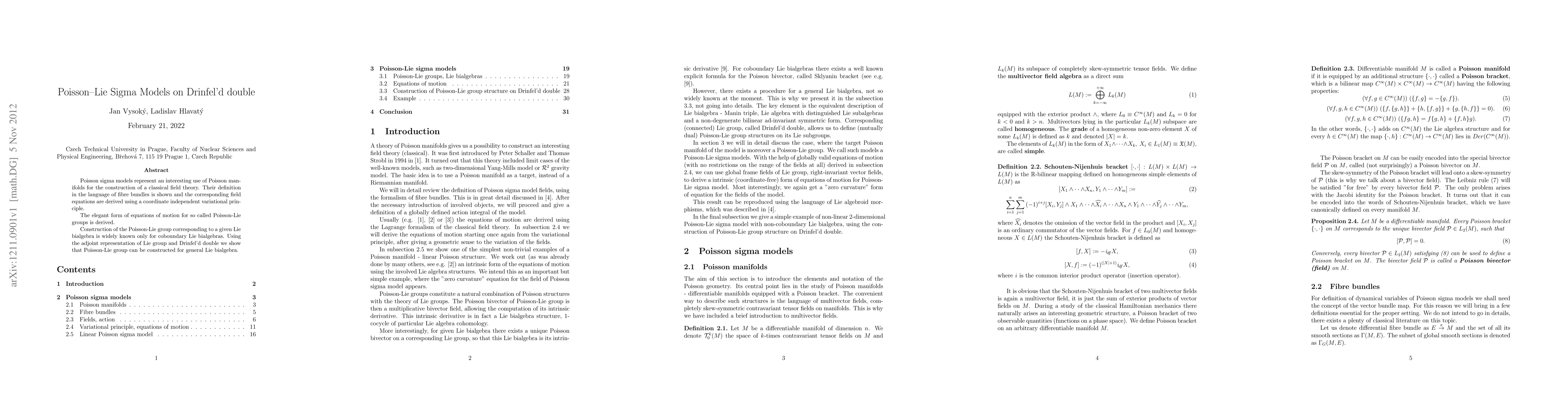 Poisson sigma models represent an interesting use of Poisson manifolds for the construction of a classical field theory. Their definition in the language of fibre bundles is shown and the corresponding field equations are derived using a coordinate independent variational principle. The elegant form of equations of motion for so called Poisson-Lie groups is derived. Construction of the Poisson-Lie group corresponding to a given Lie bialgebra is widely known only for coboundary Lie bialgebras. Using the adjoint representation of Lie group and Drinfel'd double we show that Poisson-Lie group can be constructed for general Lie bialgebra.