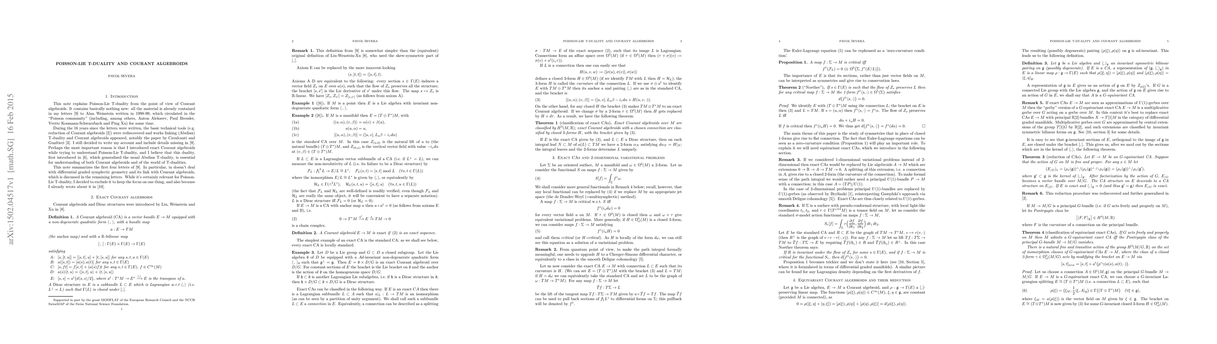 Poisson-Lie T-duality is explained using the language of Courant algebroids.