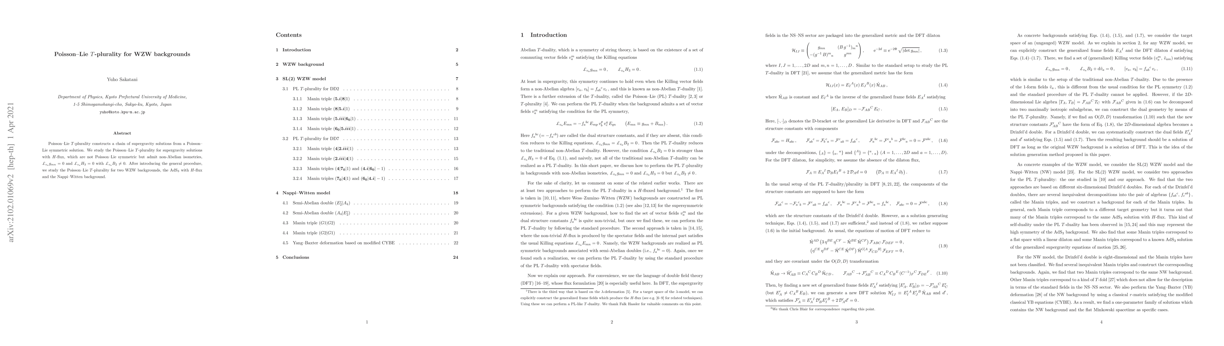 This paper explores the Poisson-Lie T-plurality method to generate a series of supergravity solutions from a Poisson-Lie symmetric solution, focusing on $H$-flux solutions that lack full Poisson-Lie symmetry but retain non-Abelian isometries. It applies this method to two WZW backgrounds: AdS$_3$ with $H$-flux and the Nappi-Witten background.