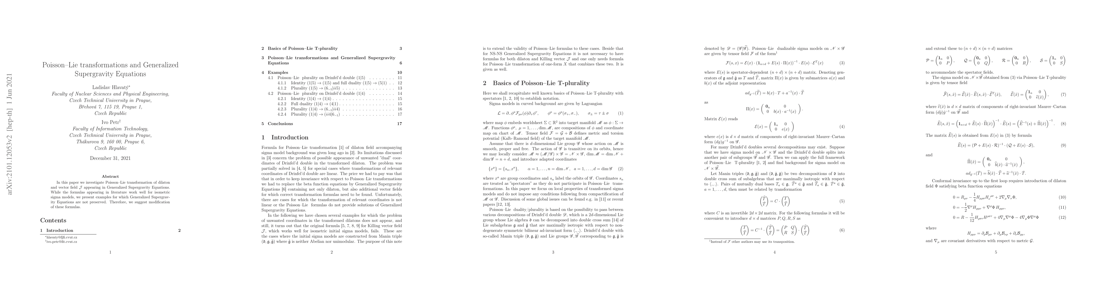 This paper explores Poisson-Lie transformations affecting dilaton and vector field J in Generalized Supergravity Equations, noting that current formulas fail in certain scenarios. The authors propose modifications to preserve the equations in broader contexts.