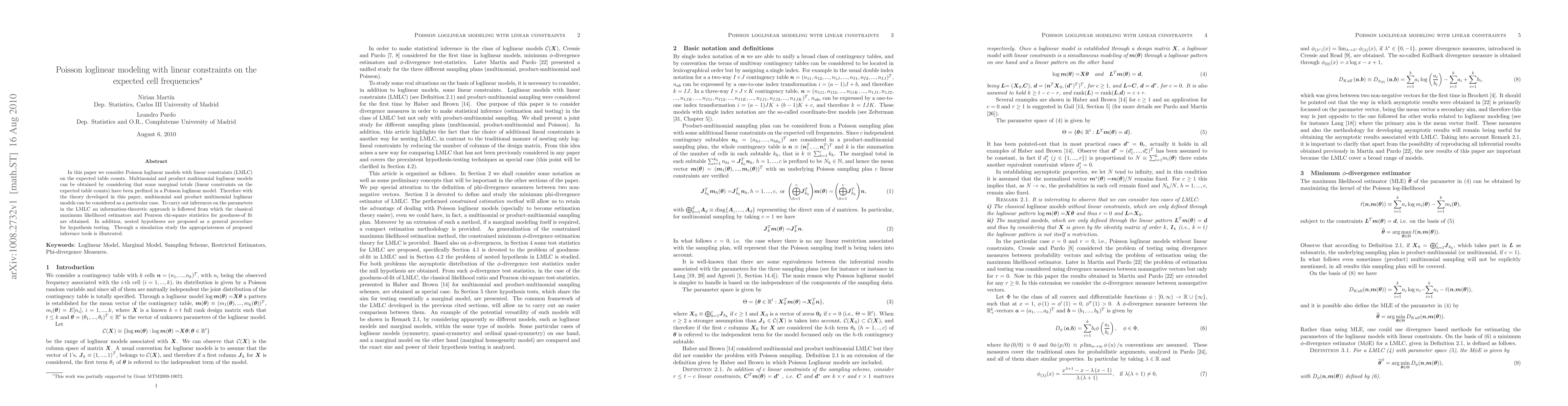 This paper develops Poisson loglinear models with linear constraints on expected cell frequencies, showing how multinomial and product multinomial models are special cases. It uses an information-theoretic approach to derive maximum likelihood estimators and goodness-of-fit tests, and proposes a nested hypothesis testing procedure, validated through simulations.
