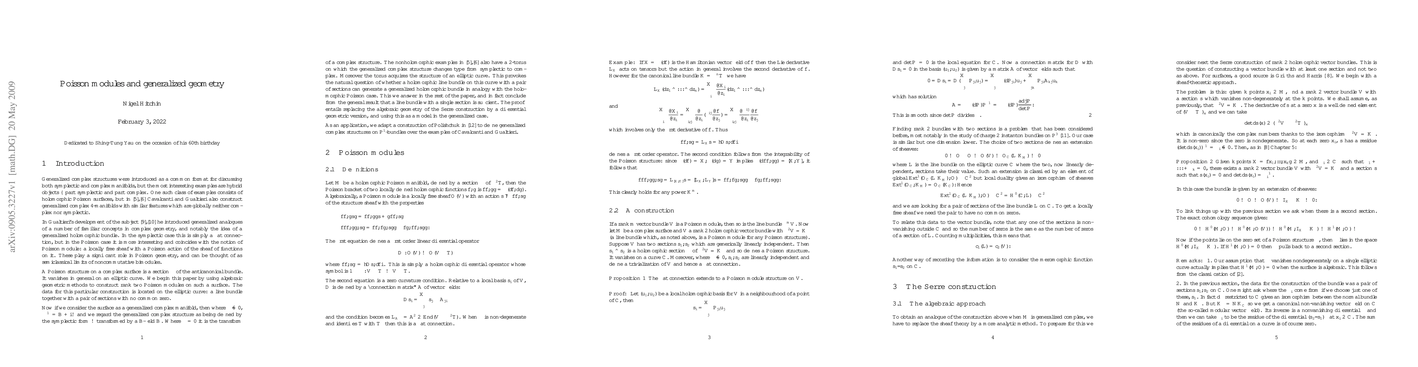 The Serre construction of rank two holomorphic bundles with a section is adapted to construct generalized holomorphic bundles on a generalized complex 4-manifold from the data of a set of points on an elliptic curve. The motivation is the special case of rank two Poisson modules on a complex surface with a holomorphic Poisson structure.