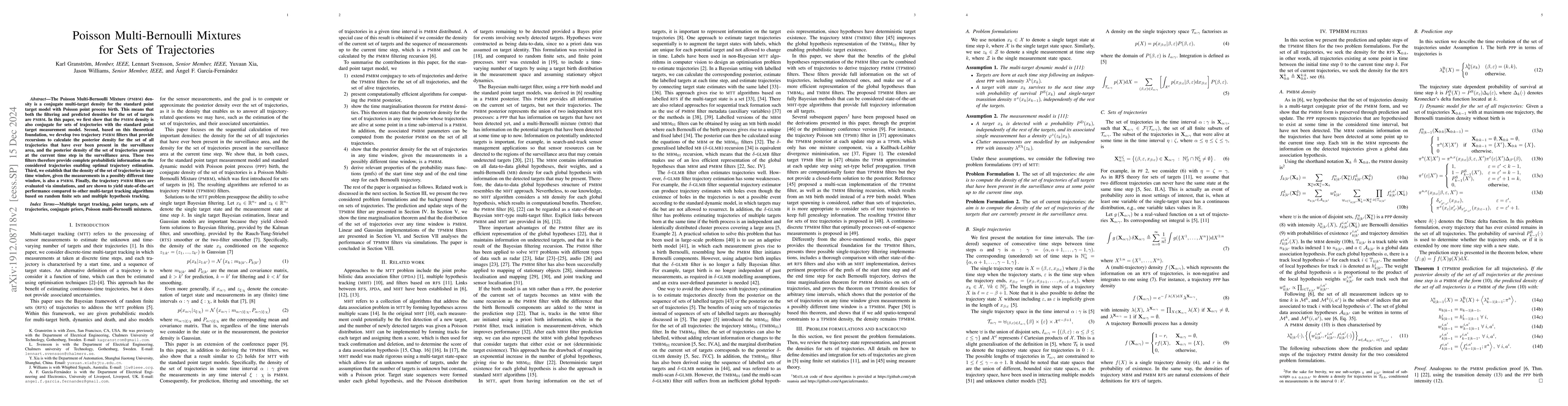 This paper introduces the Poisson Multi-Bernoulli Mixture (PMBM) for tracking sets of trajectories as random finite sets (RFS), demonstrating its conjugacy for standard point target models and presenting efficient PMBM trackers. It also shows that PMBM is the multi-trajectory density for any time window, given measurements in any other window, and evaluates the trackers to achieve state-of-the-art performance.