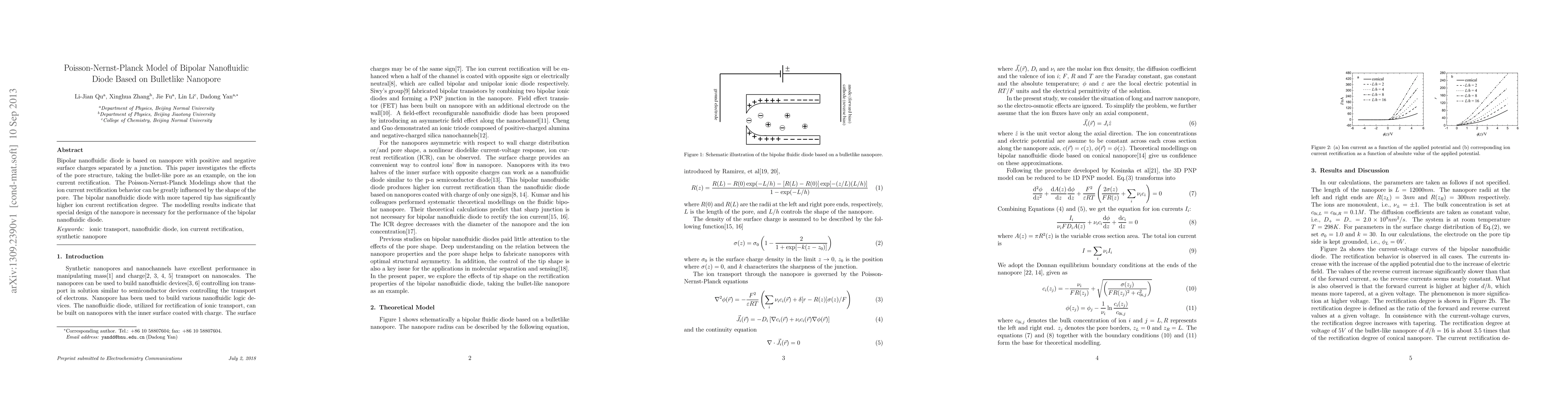This paper uses Poisson-Nernst-Planck modeling to investigate how the shape of a bullet-like nanopore affects ion current rectification in a bipolar nanofluidic diode. Results show that a more tapered pore tip significantly enhances the rectification degree, emphasizing the importance of nanopore design for diode performance.