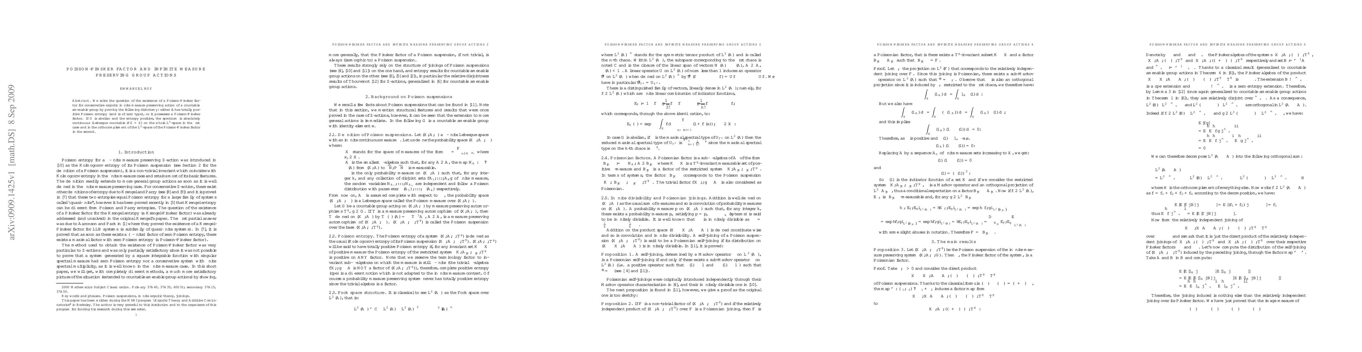 The paper presents a proof of the existence of a Poisson-Pinsker factor for conservative ergodic infinite measure preserving actions of countable amenable groups, along with spectral properties for abelian groups.