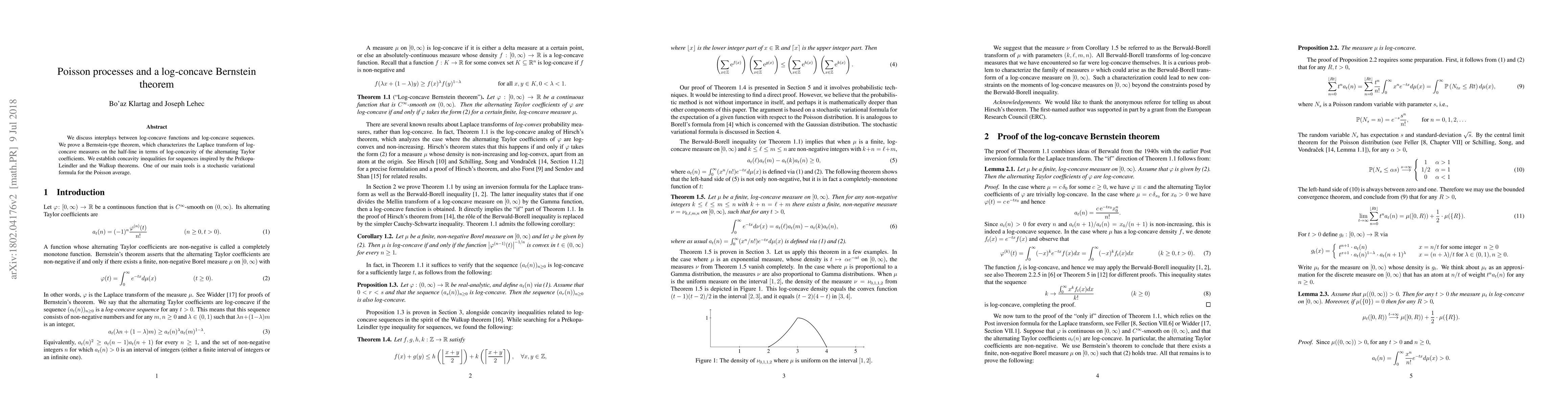 This paper explores the relationship between log-concave functions and sequences, proving a Bernstein-type theorem that links the Laplace transform of log-concave measures to the log-concavity of alternating Taylor coefficients. It also establishes concavity inequalities for sequences, utilizing a stochastic variational formula for Poisson averages as a key tool.