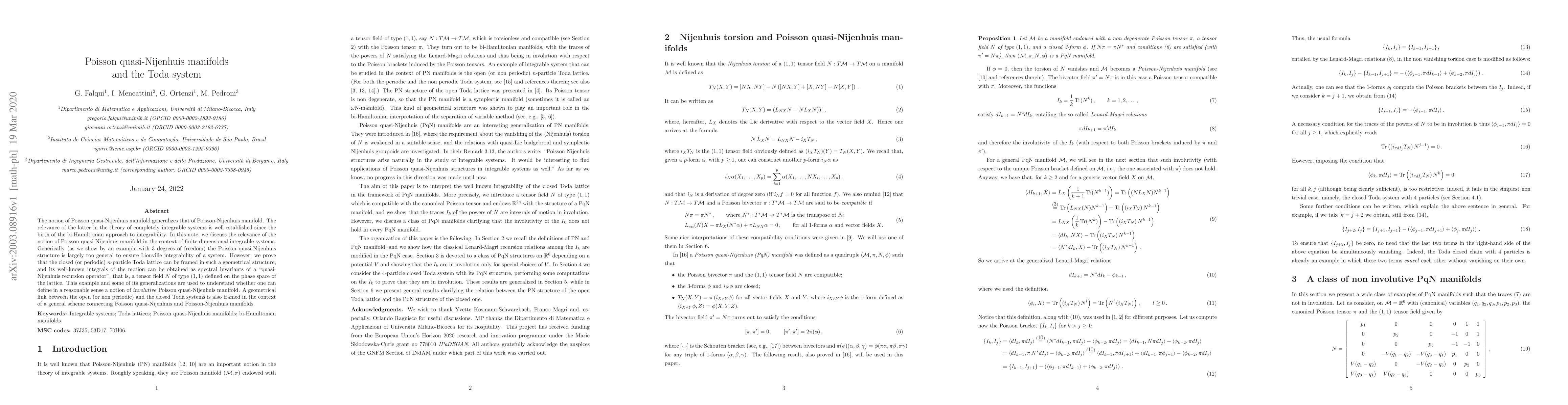 This paper explores Poisson quasi-Nijenhuis manifolds, extending the concept of Poisson-Nijenhuis manifolds, and applies this framework to the Toda lattice system. It shows that while this structure is generally too broad for ensuring Liouville integrability, it can describe the closed Toda lattice and its integrals of motion.