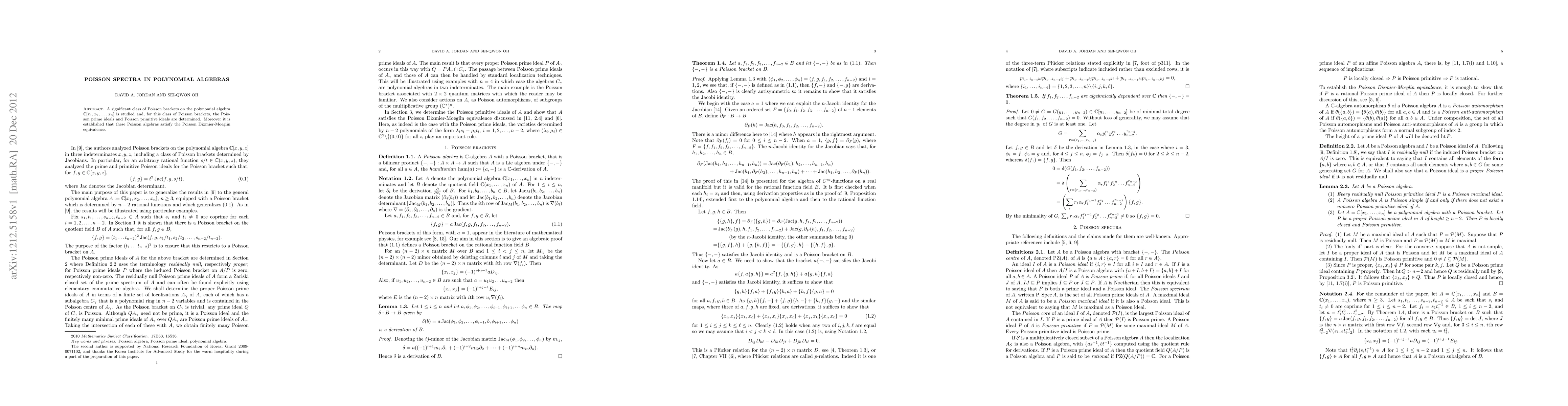 A significant class of Poisson brackets on the polynomial algebra $\C[x_1,x_2,..., x_n]$ is studied and, for this class of Poisson brackets, the Poisson prime ideals and Poisson primitive ideals are determined. Moreover it is established that these Poisson algebras satisfy the Poisson Dixmier-Moeglin equivalence.