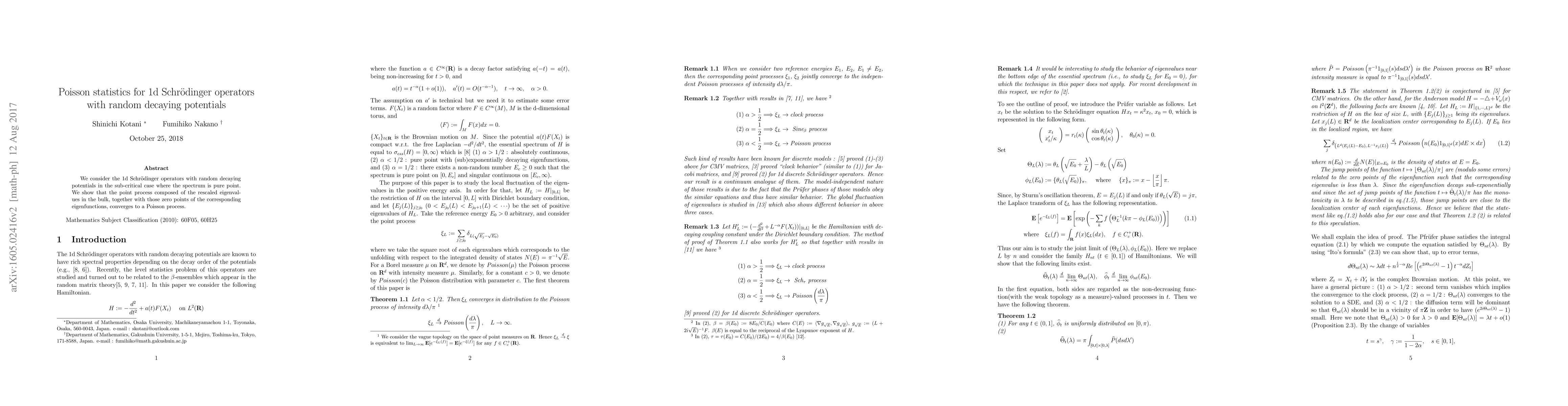 Summary: This paper investigates 1d Schrödinger operators with random decaying potentials resulting in pure point spectra, demonstrating that the point process formed by rescaled eigenvalues and eigenfunction zeros converges to a Poisson process.