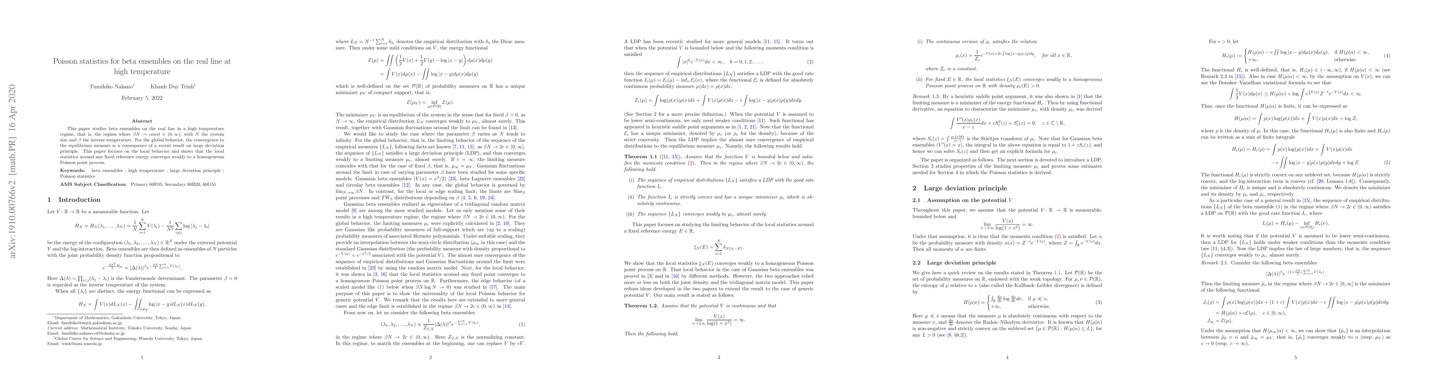 This paper investigates beta ensembles on the real line under high temperature conditions, demonstrating that local statistics converge to a homogeneous Poisson point process, based on a large deviation principle result by Liu and Wu.
