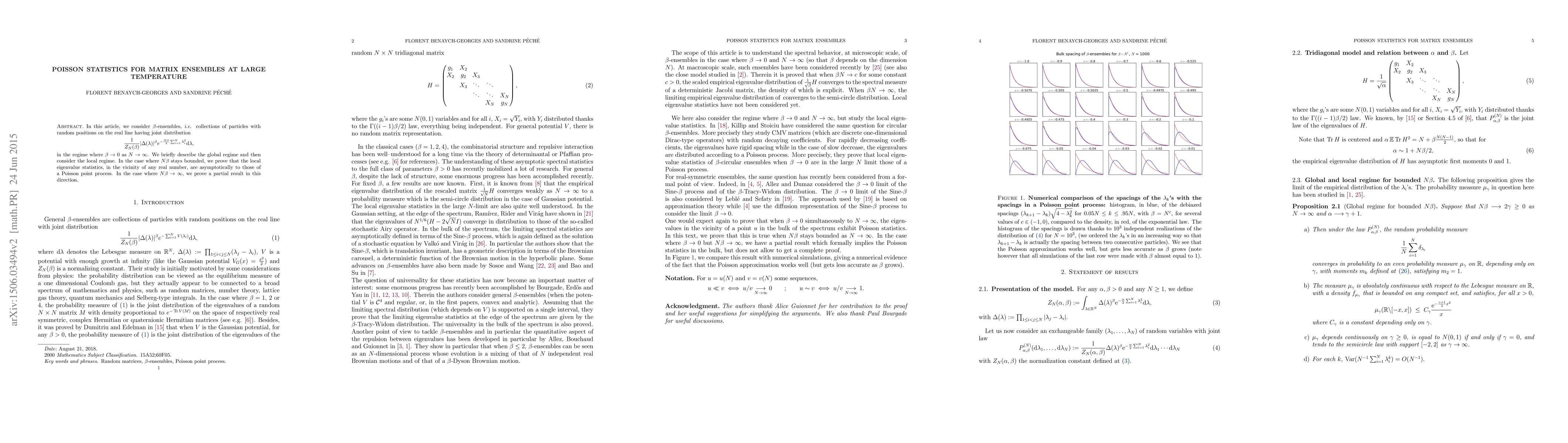 In this article, we consider $\beta$-ensembles, i.e. collections of particles with random positions on the real line having joint distribution $$\frac{1}{Z_N(\beta)}|\Delta(\lambda)|^\beta e^{- \frac{N\beta}{4}\sum_{i=1}^N\lambda_i^2}d \lambda,$$ in the regime where $\beta\to 0$ as $N\to\infty$. We briefly describe the global regime and then consider the local regime. In the case where $N\beta$ stays bounded, we prove that the local eigenvalue statistics, in the vicinity of any real number, are asymptotically to those of a Poisson point process. In the case where $N\beta\to\infty$, we prove a partial result in this direction.