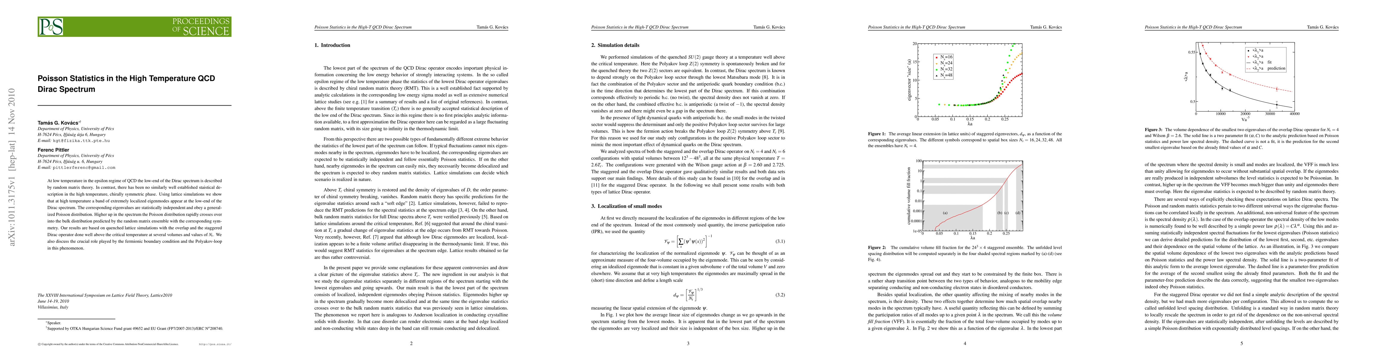 The study reveals that at high temperatures in QCD, a band of localized Dirac spectrum eigenmodes follows a generalized Poisson distribution, contrasting with the random matrix theory observed at low temperatures. The transition from Poisson to the bulk random matrix distribution occurs higher in the spectrum, highlighting the impact of fermionic boundary conditions and the Polyakov-loop.