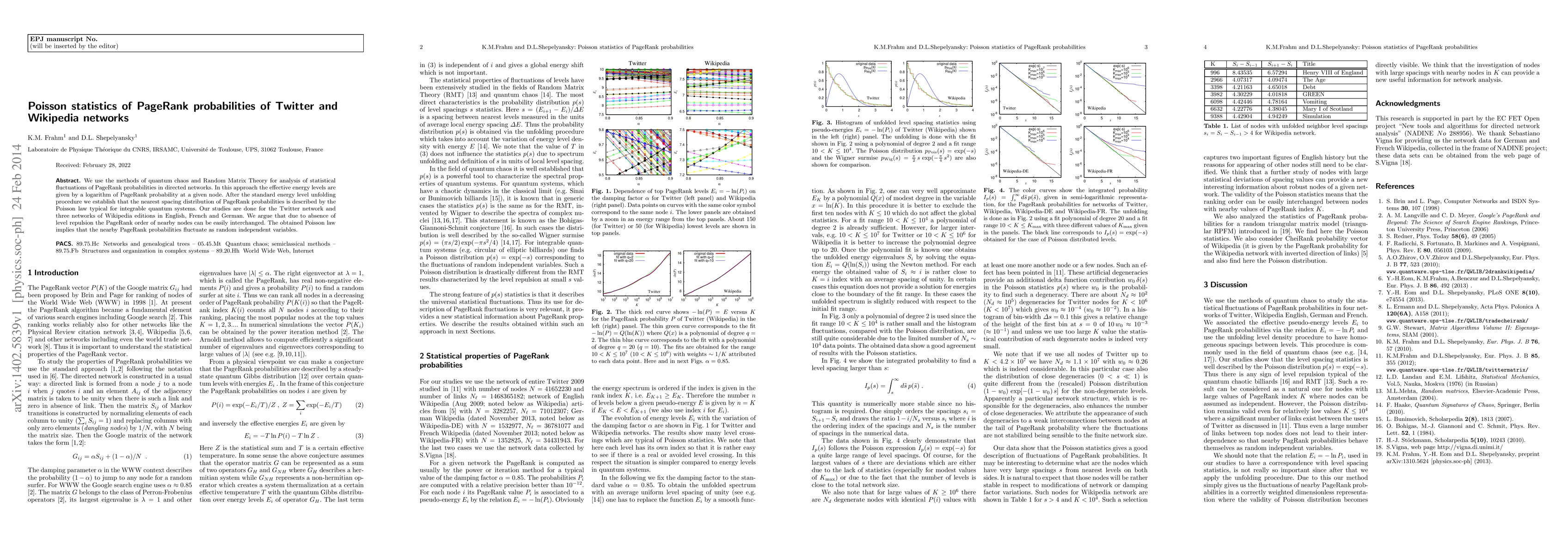 We use the methods of quantum chaos and Random Matrix Theory for analysis of statistical fluctuations of PageRank probabilities in directed networks. In this approach the effective energy levels are given by a logarithm of PageRank probability at a given node. After the standard energy level unfolding procedure we establish that the nearest spacing distribution of PageRank probabilities is described by the Poisson law typical for integrable quantum systems. Our studies are done for the Twitter network and three networks of Wikipedia editions in English, French and German. We argue that due to absence of level repulsion the PageRank order of nearby nodes can be easily interchanged. The obtained Poisson law implies that the nearby PageRank probabilities fluctuate as random independent variables.