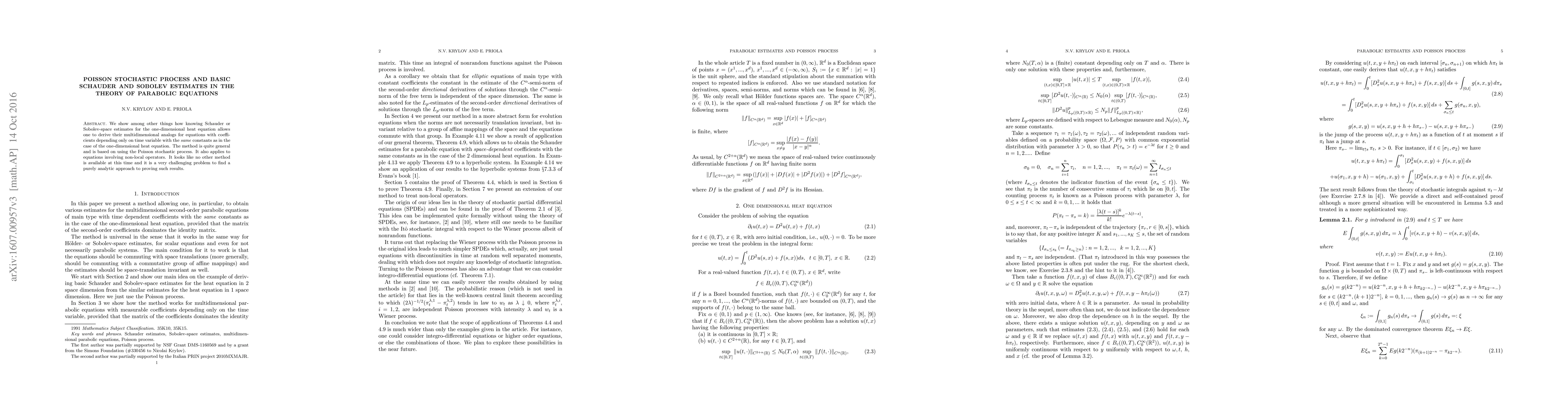 We show among other things how knowing Schauder or Sobolev-space estimates for the one-dimensional heat equation allows one to derive their multidimensional analogs for equations with coefficients depending only on time variable with the {\em same\/} constants as in the case of the one-dimensional heat equation. The method is based on using the Poisson stochastic process. It looks like no other method is available at this time and it is a very challenging problem to find a purely analytic approach to proving such results.