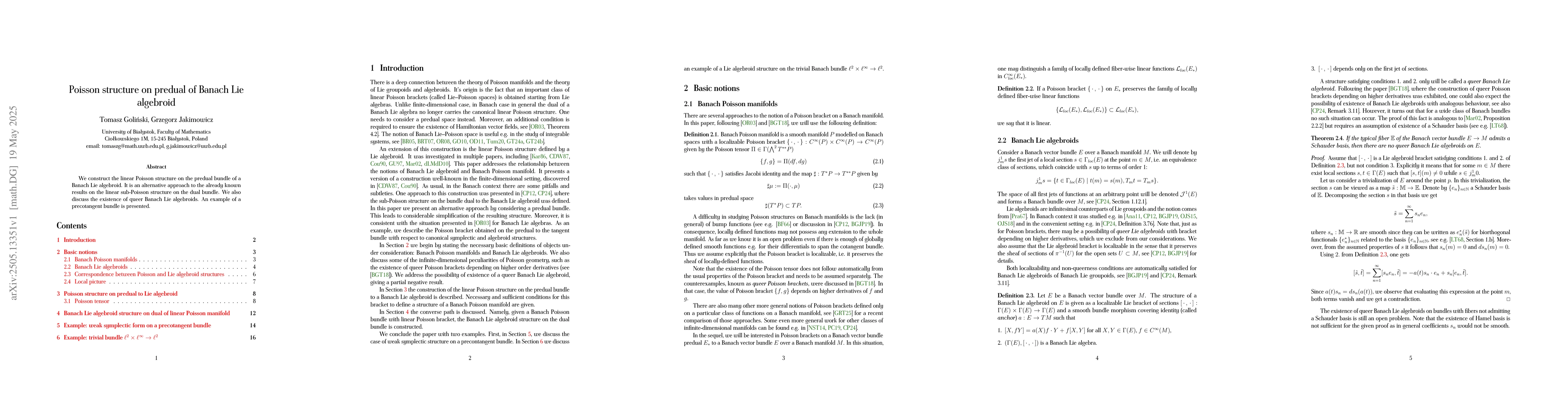 The introduction of a linear Poisson structure on the predual bundle of Banach Lie algebroids, offering an alternative perspective compared to existing dual bundle results.
