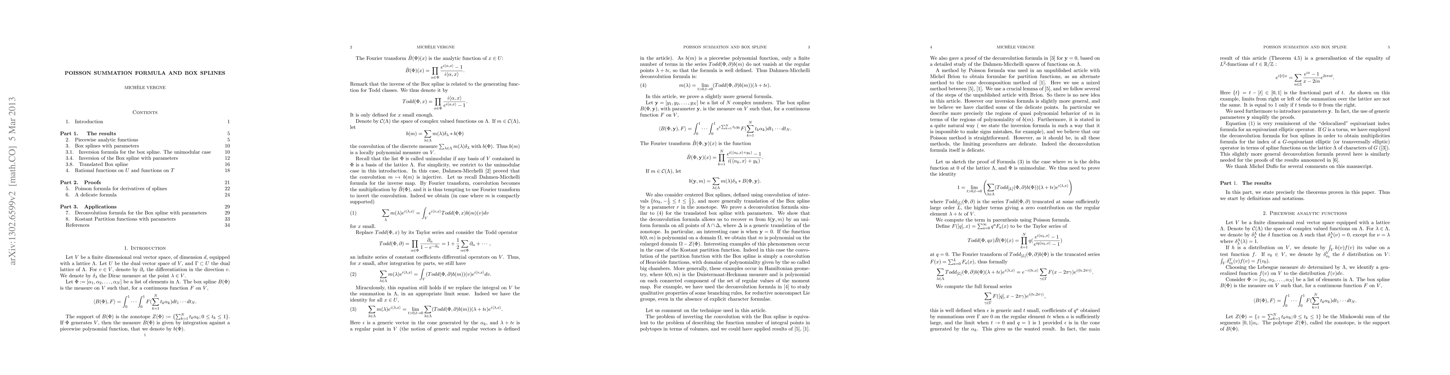 Summary: This paper generalizes the Dahmen-Micchelli deconvolution formula for Box splines using parameters. The authors prove their results through identities related to the Poisson summation of rational functions with poles on hyperplanes.