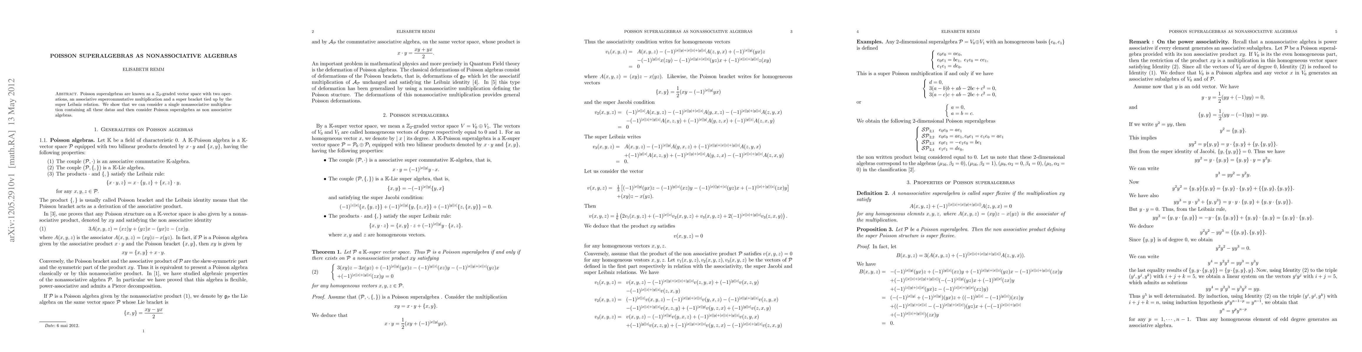 Summary: This paper explores Poisson superalgebras as $\mathbb{Z}_2$-graded vector spaces with an associative supercommutative multiplication and a super bracket, proposing a unified nonassociative multiplication that encapsulates all these elements, thereby redefining Poisson superalgebras as nonassociative algebras.