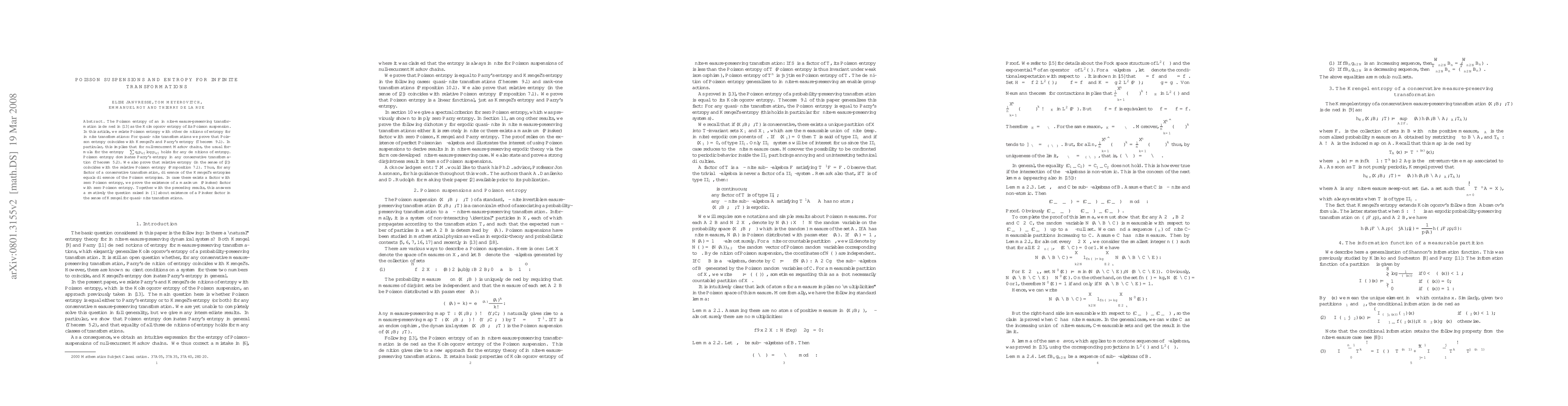 The Poisson entropy of an infinite-measure-preserving transformation is defined as the Kolmogorov entropy of its Poisson suspension. In this article, we relate Poisson entropy with other definitions of entropy for infinite transformations: For quasi-finite transformations we prove that Poisson entropy coincides with Krengel's and Parry's entropy. In particular, this implies that for null-recurrent Markov chains, the usual formula for the entropy $-\sum q_i p_{i,j}\log p_{i,j}$ holds in any of the definitions for entropy. Poisson entropy dominates Parry's entropy in any conservative transformation. We also prove that relative entropy (in the sense of Danilenko and Rudolph) coincides with the relative Poisson entropy. Thus, for any factor of a conservative transformation, difference of the Krengel's entropy is equal to the difference of the Poisson entropies. In case there exists a factor with zero Poisson entropy, we prove the existence of a maximum (Pinsker) factor with zero Poisson entropy. Together with the preceding results, this answers affirmatively the question raised in arXiv:0705.2148v3 about existence of a Pinsker factor in the sense of Krengel for quasi-finite transformations.