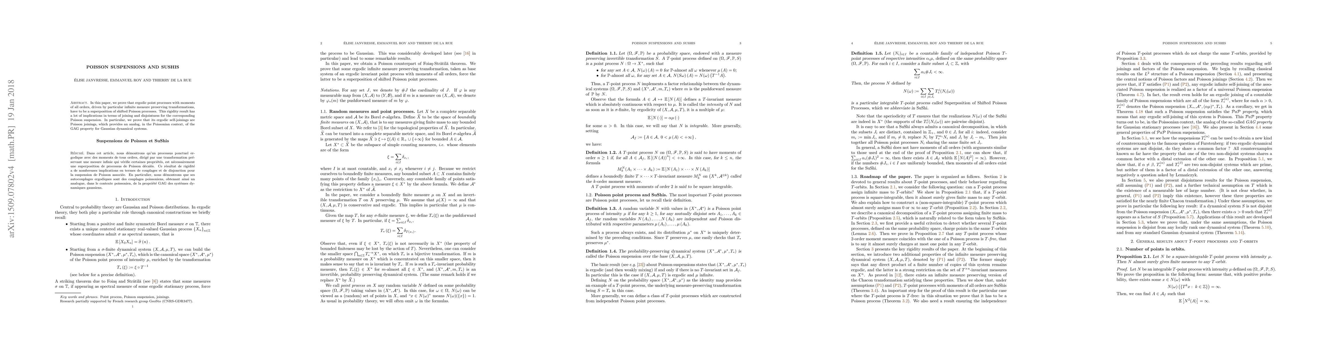 In this paper, we prove that ergodic point processes with moments of all orders, driven by particular infinite measure preserving transformations, have to be a superposition of shifted Poisson processes. This rigidity result has a lot of implications in terms of joining and disjointness for the corresponding Poisson suspension. In particular, we prove that its ergodic self-joinings are Poisson joinings, which provides an analog, in the Poissonian context, of the GAG property for Gaussian dynamical systems.