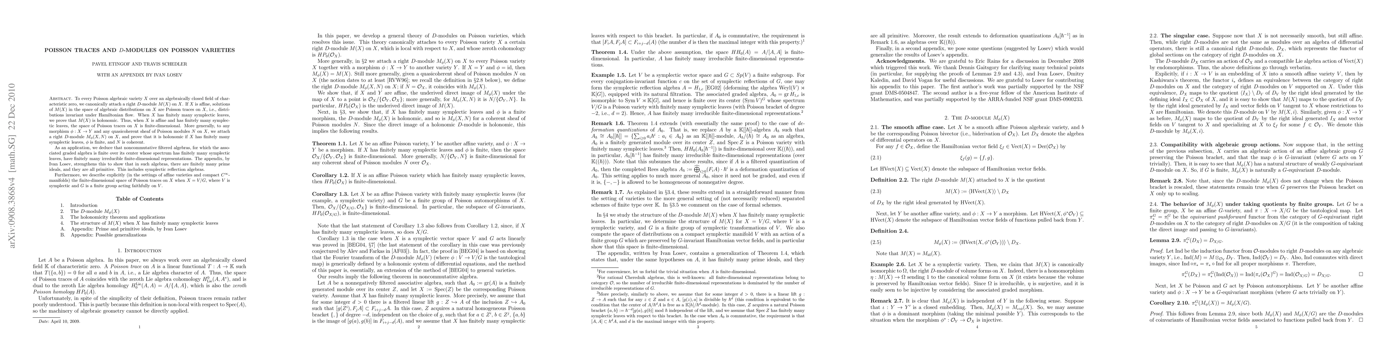 To every Poisson algebraic variety X over an algebraically closed field of characteristic zero, we canonically attach a right D-module M(X) on X. If X is affine, solutions of M(X) in the space of algebraic distributions on X are Poisson traces on X, i.e., distributions invariant under Hamiltonian flows. When X has finitely many symplectic leaves, we prove that M(X) is holonomic. Thus, when X is affine and has finitely many symplectic leaves, the space of Poisson traces on X is finite-dimensional. As an application, we deduce that noncommutative filtered algebras whose associated graded algebras are coordinate rings of Poisson varieties with finitely many symplectic leaves have finitely many irreducible finite-dimensional representations. The appendix, by Ivan Losev, strengthens this to show that in such algebras, there are finitely many prime ideals, and they are all primitive. More generally, to any morphism phi: X -> Y and any quasicoherent sheaf of Poisson modules N on X, we attach a right D-module M_phi(X, N) on X, and prove that it is holonomic if X has finitely many symplectic leaves, phi is finite, and N is coherent. As an application, the finiteness result for irreducible representations of noncommutative filtered algebras extends to the case where the associated graded algebra is not necessarily commutative, but is finitely generated as a module over its center, which is the coordinate ring of a Poisson variety with finitely many symplectic leaves. We also describe explicitly (in the settings of affine varieties and compact smooth manifolds) the space of Poisson traces on X when X=V/G, where V is symplectic and G is a finite group acting faithfully on V. In particular, we show that this space is finite-dimensional.