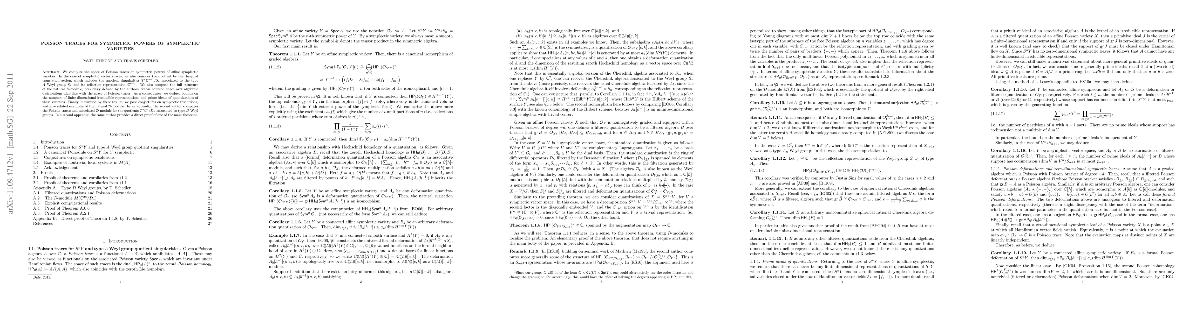 This paper computes the space of Poisson traces on symmetric powers of affine symplectic varieties, deriving bounds on representations and prime ideals of their quantizations. It also introduces conjectures on symplectic resolutions and presents a direct proof for one main theorem in an appendix.