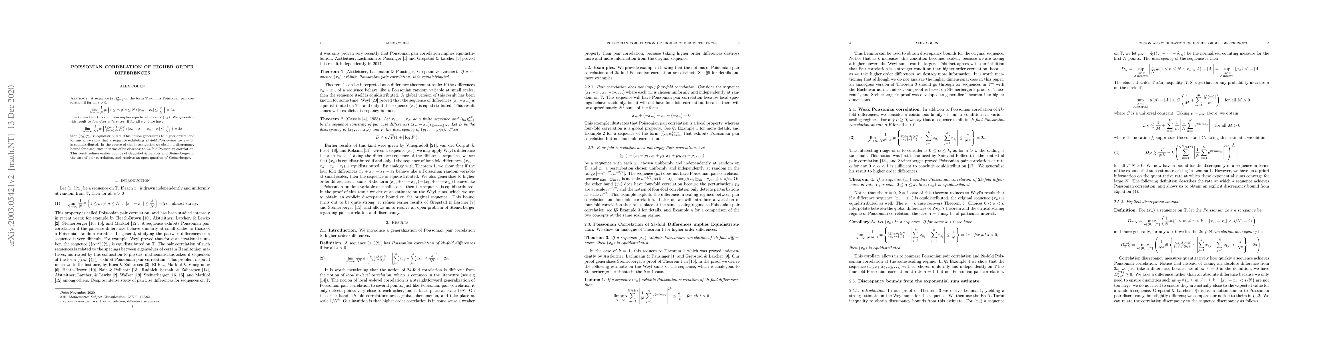 A sequence on the torus exhibits equidistribution if it shows 2k-fold Poissonian correlation for any k, a generalization of pair correlation, and this finding refines earlier bounds.