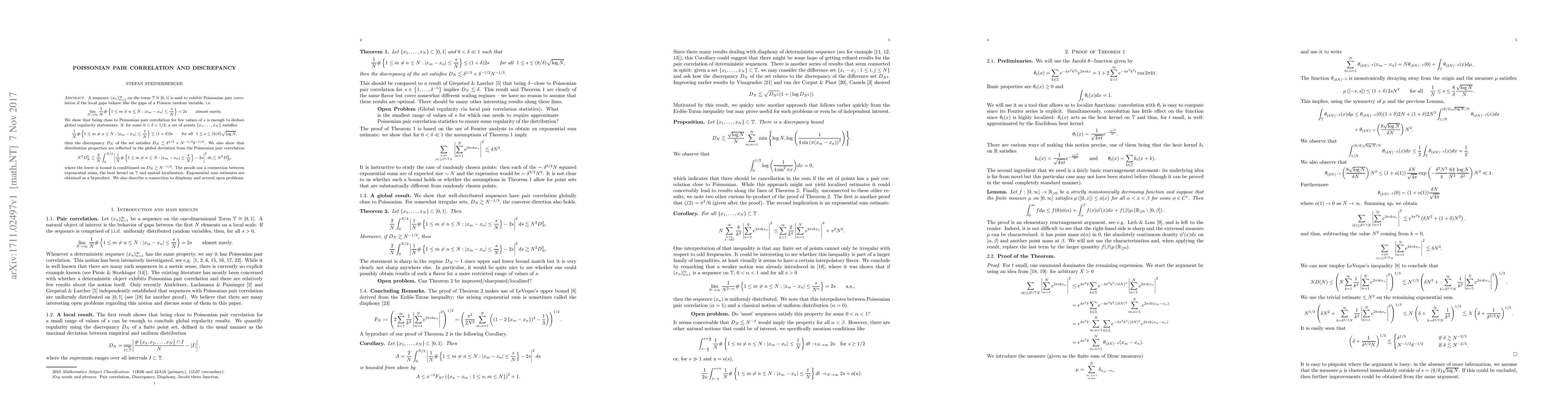A sequence on a torus exhibits Poissonian pair correlation if gaps behave like Poisson random variable gaps. The paper shows that global regularity statements can be deduced from local correlations.