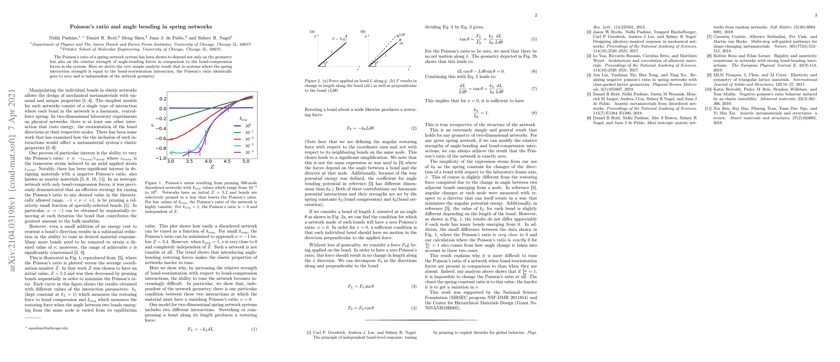 This paper demonstrates that in spring network systems where the spring interaction strength equals the bond-reorientation strength, the Poisson's ratio becomes zero and is geometry-independent. This finding highlights the critical role of angle-bending forces in determining the system's mechanical properties.