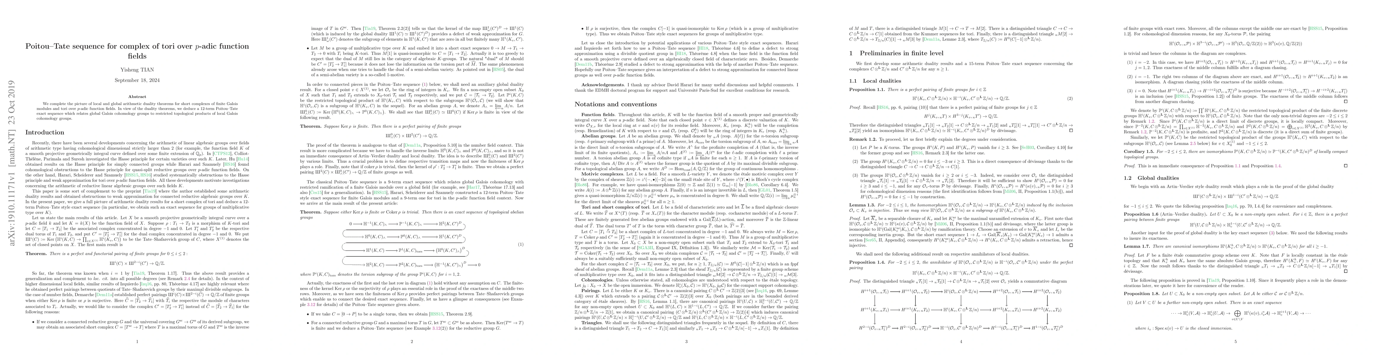 This paper establishes local and global arithmetic duality theorems for short complexes of finite Galois modules and tori over $p$-adic function fields, culminating in a $12$-term Poitou--Tate exact sequence that connects global Galois cohomology with local Galois cohomology groups.