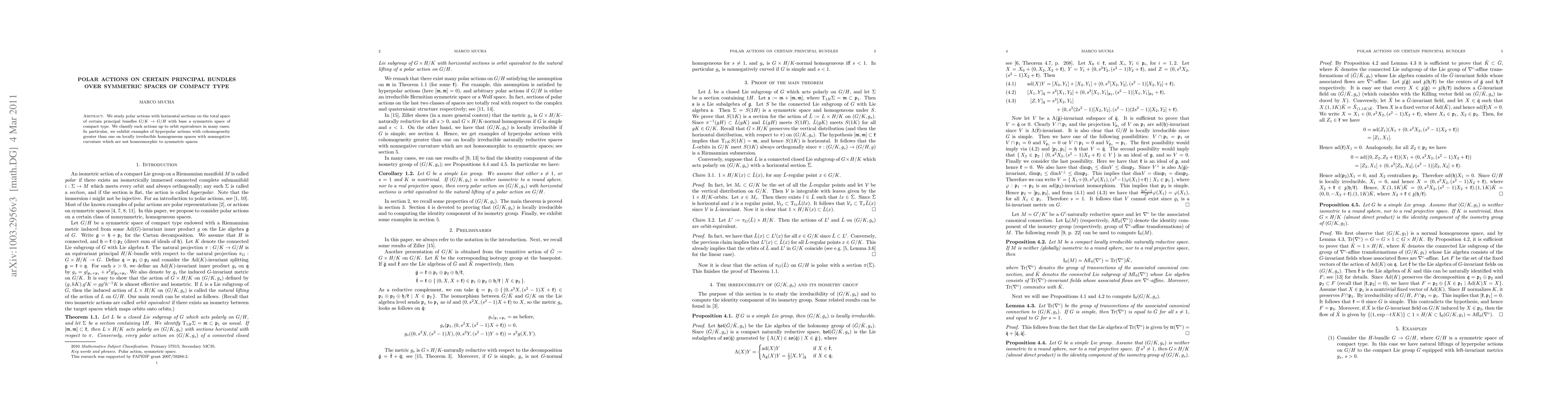 This paper classifies polar actions with horizontal sections on principal bundles $G/K \to G/H$ over symmetric spaces of compact type, identifying hyperpolar actions with cohomogeneity greater than one on nonnegative curvature homogeneous spaces that do not resemble symmetric spaces.
