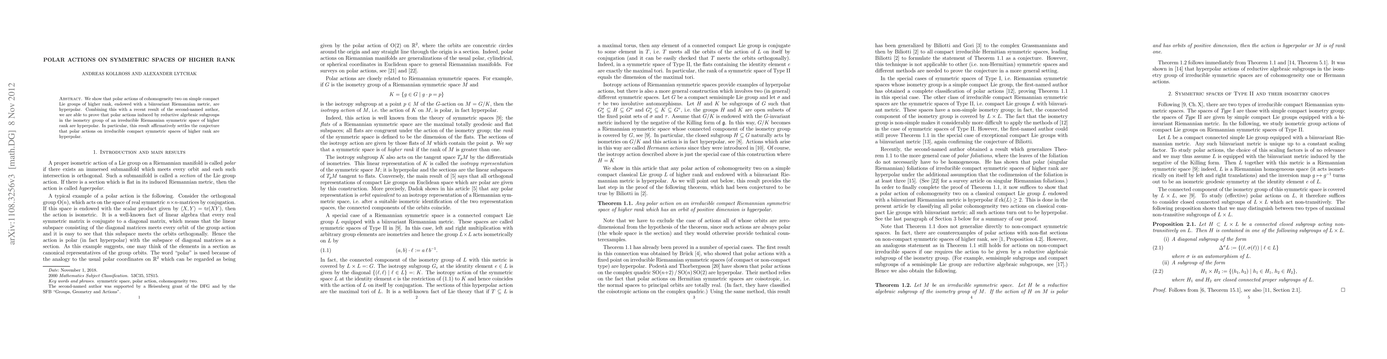 This paper proves that polar actions of cohomogeneity two on simple compact Lie groups with biinvariant metrics are hyperpolar, and extends this result to show that reductive algebraic subgroups induce hyperpolar actions in symmetric spaces of higher rank, thereby confirming the conjecture regarding polar actions on such spaces.