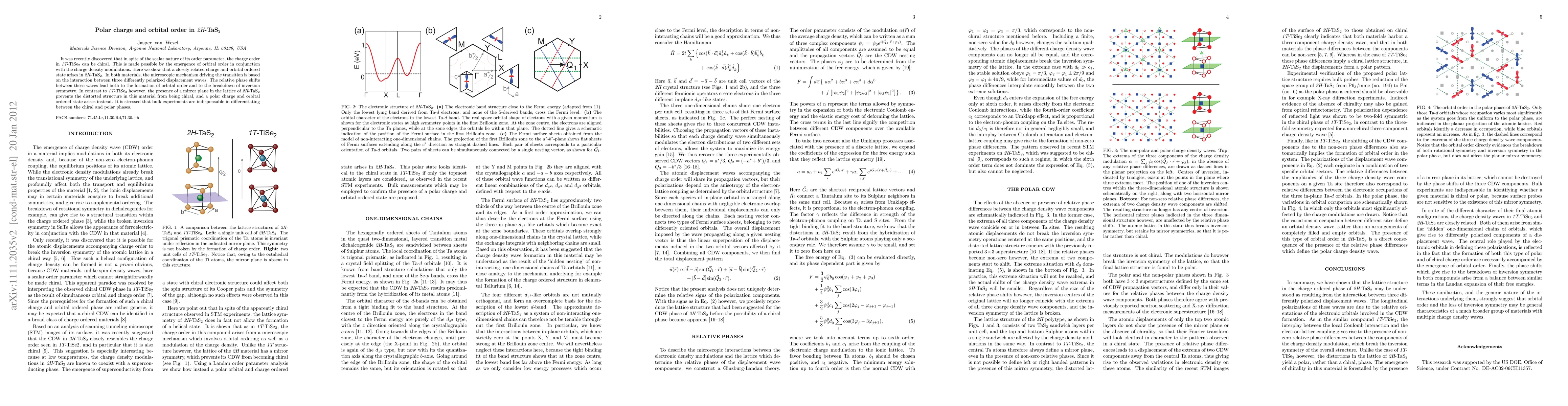 The paper presents a detailed theoretical analysis of the electronic structure and interactions leading to a novel polar charge and orbital order in 2H-TaS2, utilizing both band structure calculations and Ginzburg-Landau theory.