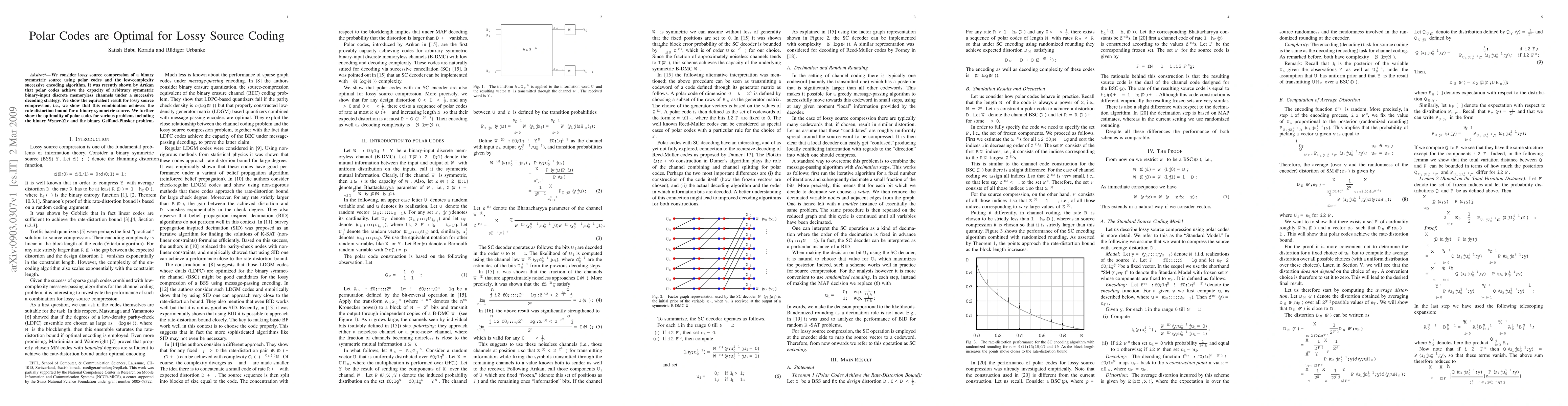 Polar codes achieve optimal lossy source compression for binary symmetric sources, matching the rate-distortion bound, and outperforming existing solutions to various problems including Wyner-Ziv and Gelfand-Pinsker.