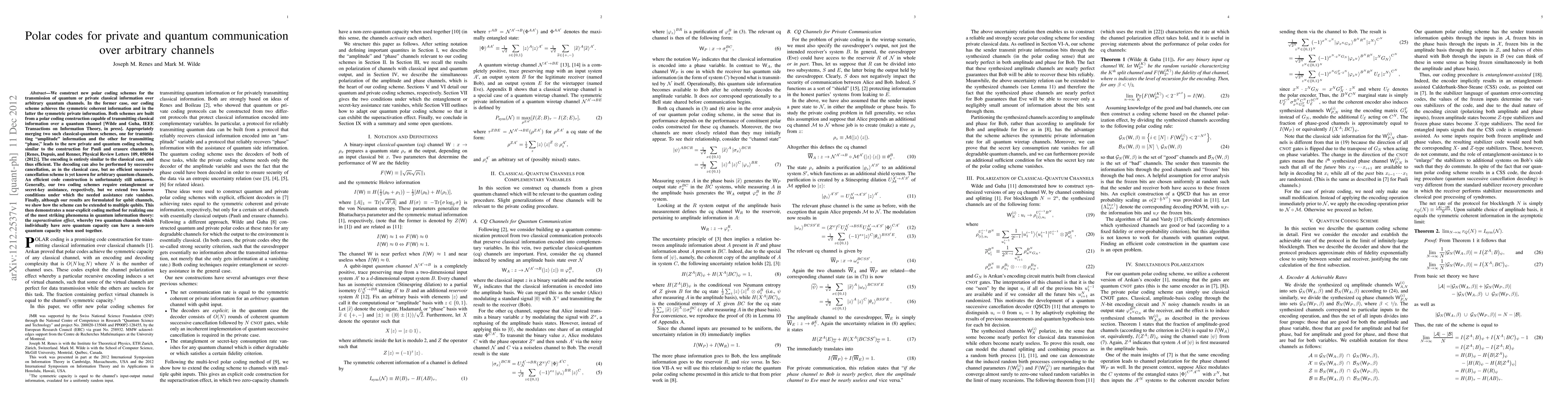 This paper constructs polar coding schemes for transmitting quantum or private classical information over arbitrary quantum channels, achieving symmetric coherent information and private information. The schemes require entanglement or secret-key assistance but can be extended to multiple qubits, demonstrating the superactivation effect.