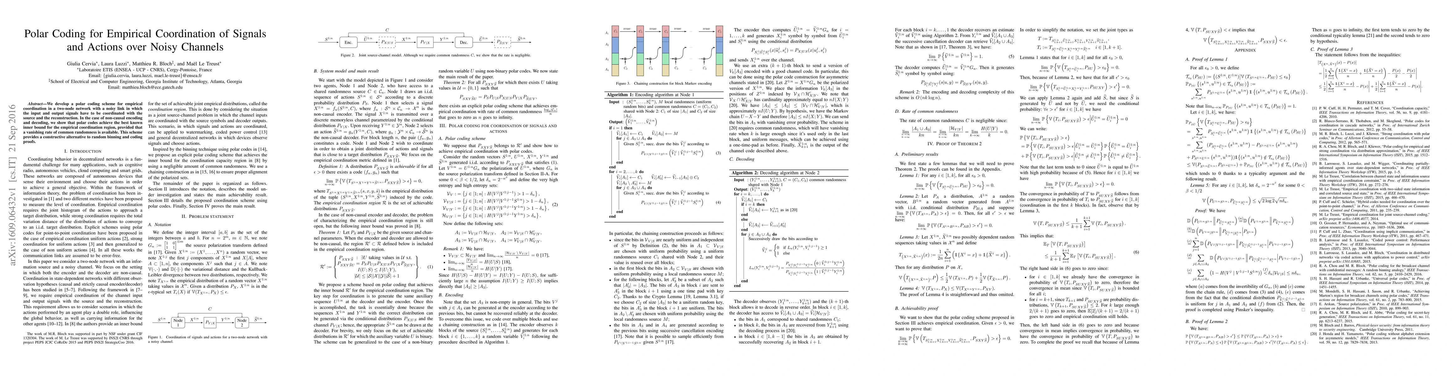 Summary: This paper introduces a polar coding scheme for empirical coordination in a two-node network with a noisy channel, demonstrating that it achieves the best known inner bound for coordination, provided a vanishing rate of common randomness is used, offering a constructive alternative to traditional random binning methods.