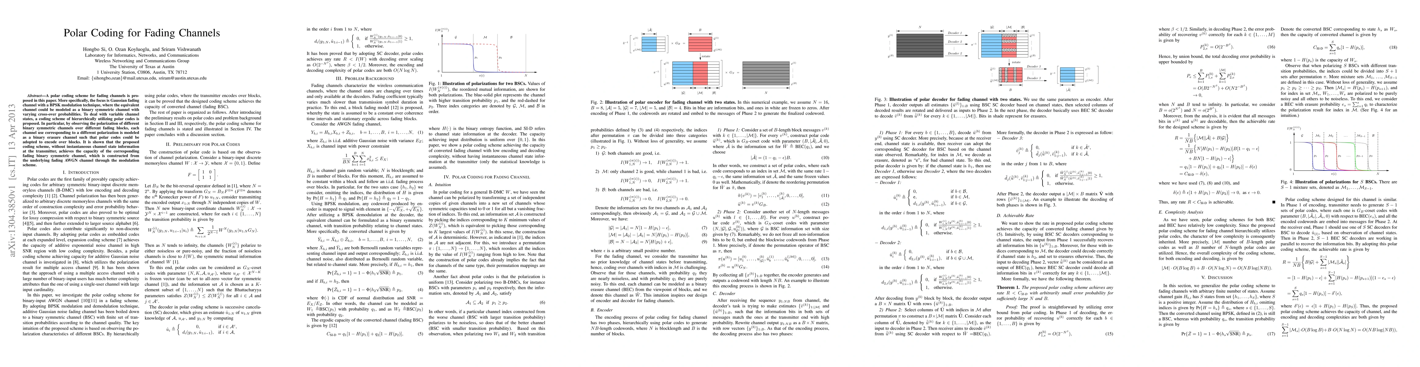This paper proposes a polar coding scheme for Gaussian fading channels with BPSK modulation, modeling varying channel states as binary erasure channels. The scheme hierarchically utilizes polar codes to achieve the capacity of the fading channel without requiring instantaneous channel state information at the transmitter.