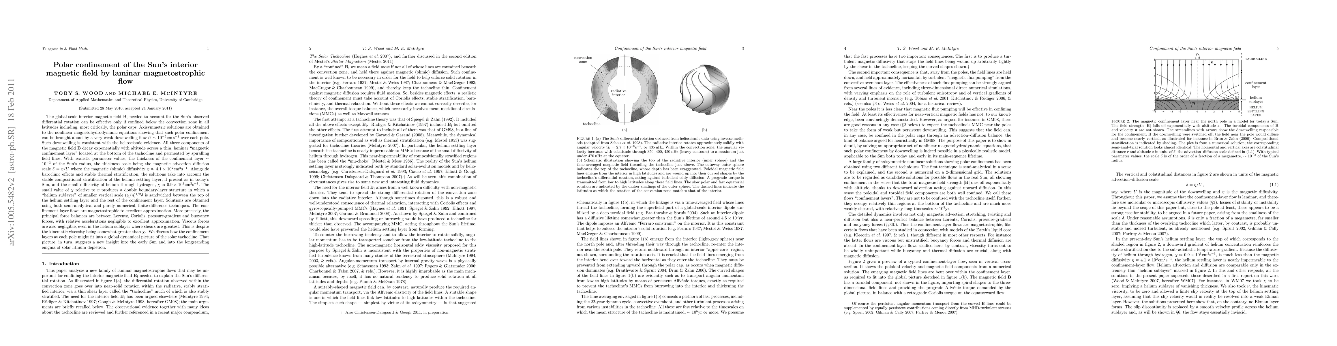The global-scale interior magnetic field needed to account for the Sun's observed differential rotation can be effective only if confined below the convection zone in all latitudes, including the polar caps. Axisymmetric nonlinear MHD solutions are obtained showing that such confinement can be brought about by a very weak downwelling flow U~10^{-5}cm/s over each pole. Such downwelling is consistent with the helioseismic evidence. All three components of the magnetic field decay exponentially with altitude across a thin "magnetic confinement layer" located at the bottom of the tachocline. With realistic parameter values, the thickness of the confinement layer ~10^{-3} of the Sun's radius. Alongside baroclinic effects and stable thermal stratification, the solutions take into account the stable compositional stratification of the helium settling layer, if present as in today's Sun, and the small diffusivity of helium through hydrogen, chi. The small value of chi relative to magnetic diffusivity produces a double boundary-layer structure in which a "helium sublayer" of smaller vertical scale is sandwiched between the top of the helium settling layer and the rest of the confinement layer. Solutions are obtained using both semi-analytical and purely numerical, finite-difference techniques. The confinement-layer flows are magnetostrophic to excellent approximation. More precisely, the principal force balances are between Lorentz, Coriolis, pressure-gradient and buoyancy forces, with relative accelerations and viscous forces negligible. This is despite the kinematic viscosity being somewhat greater than chi. We discuss how the confinement layers at each pole might fit into a global dynamical picture of the solar tachocline. That picture, in turn, suggests a new insight into the early Sun and into the longstanding enigma of solar lithium depletion.