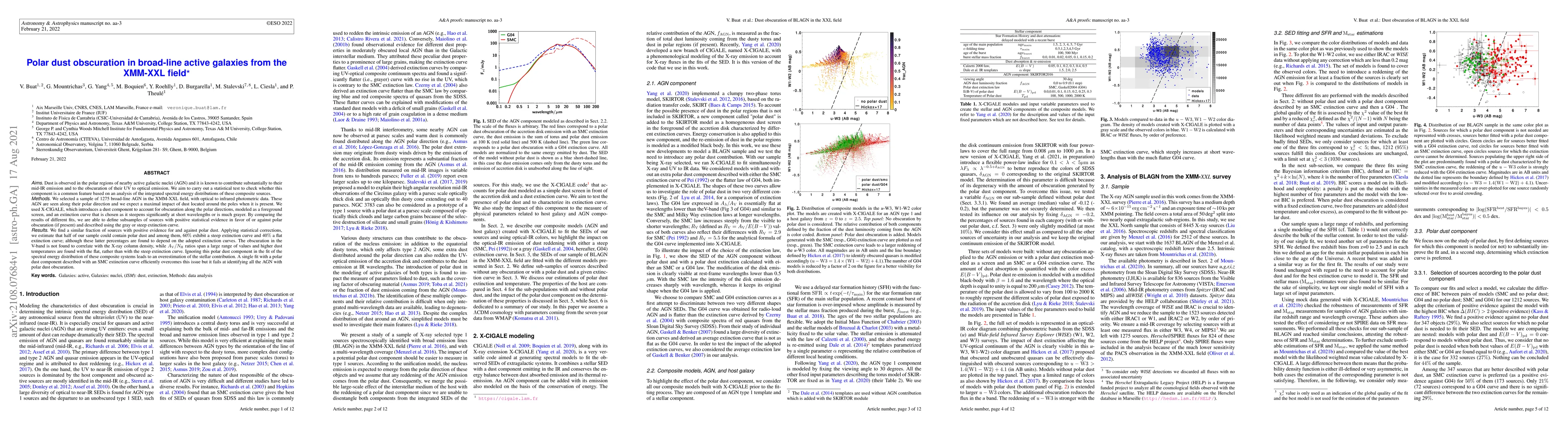 This paper investigates polar dust obscuration in broad-line active galaxies (BLAGN) using data from the XMM-XXL field. The study finds that about half of the sample exhibits evidence for polar dust obscuration, with 60% showing a steep extinction curve and 40% a flat curve, though these percentages depend on the chosen extinction model. Ignoring polar dust leads to overestimating stellar contributions in the spectral energy distribution.