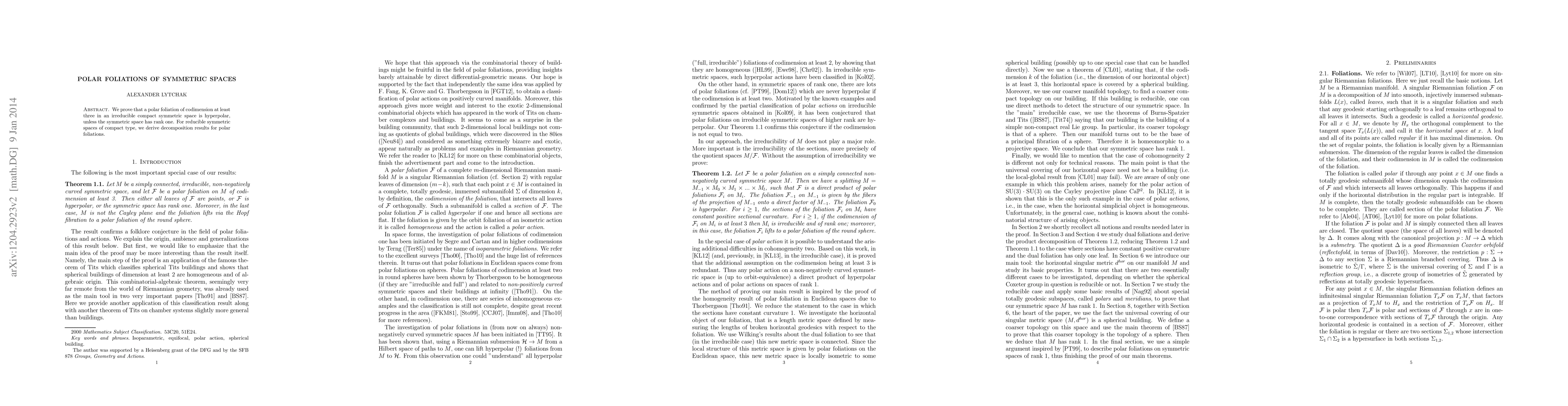 Summary: The paper establishes that polar foliations in irreducible compact symmetric spaces with codimension three or higher are hyperpolar, except when the space has rank one. For reducible symmetric spaces of compact type, it provides decomposition results for polar foliations.